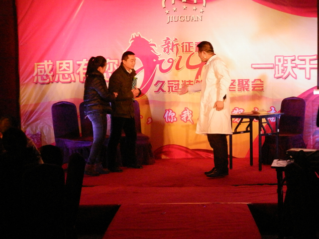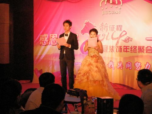 歌聲裊裊辭舊歲,舞姿翩翩賀新春!久冠裝飾迎新晚會(huì)于2014年1月5號(hào)在泛海大酒店圓滿落幕。剛剛過去的2013年,是公司承前啟后、繼往開來(lái)的一年。公司在13年底……,依托公司更大的資源平臺(tái)和支持,在整個(gè)行業(yè)遭遇寒冬的大環(huán)境下,我們并沒有被困難所嚇倒,公司業(yè)務(wù)保持了持續(xù)穩(wěn)健的發(fā)展,取得了良好的業(yè)績(jī)。成功伴著艱辛,喜悅伴著汗水。在忙忙碌碌的每一天中,我們不知不覺地迎來(lái)了嶄新的2014年!久冠裝飾發(fā)展的每一步都離不開每個(gè)同事的努力和付出。而總會(huì)有員工表現(xiàn)特別優(yōu)秀,他們?cè)敢飧冻隽吮葎e人更多的艱辛和汗水,也取得了更加優(yōu)異的成績(jī),成為我們中間的佼佼者。